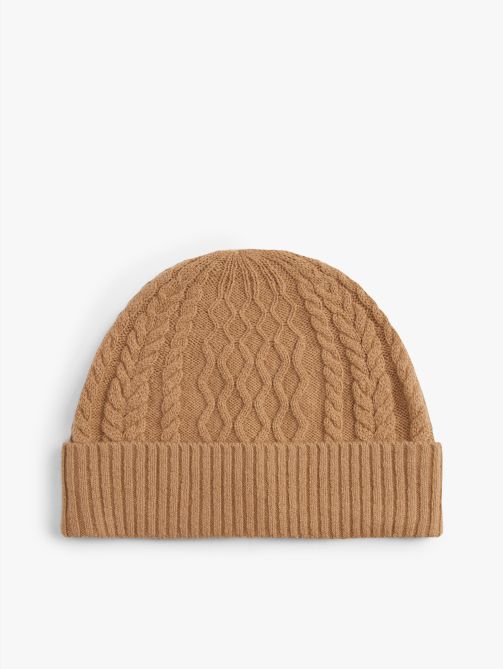 تمنحك هذه القبعة المحبوكة لمسة دافئة وأناقة مستوحاة من الطابع الكلاسيكي بفضل تصميمها بنمط الكيبل وتطريز شعار TH البارز على الجهة الأمامية، لتكون خيارك المثالي لأيام الطقس البارد.
