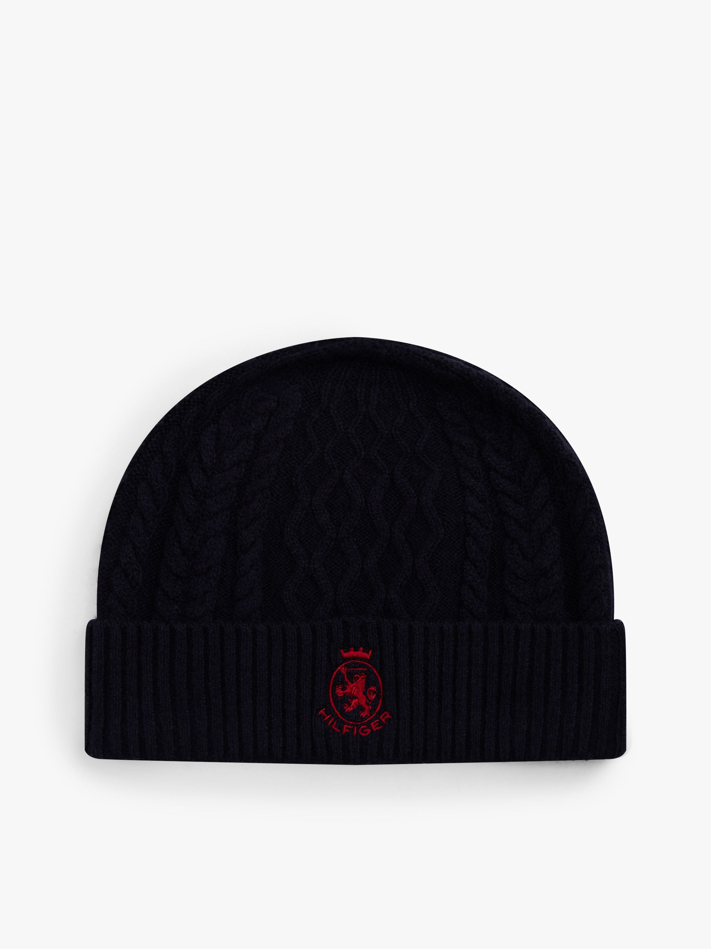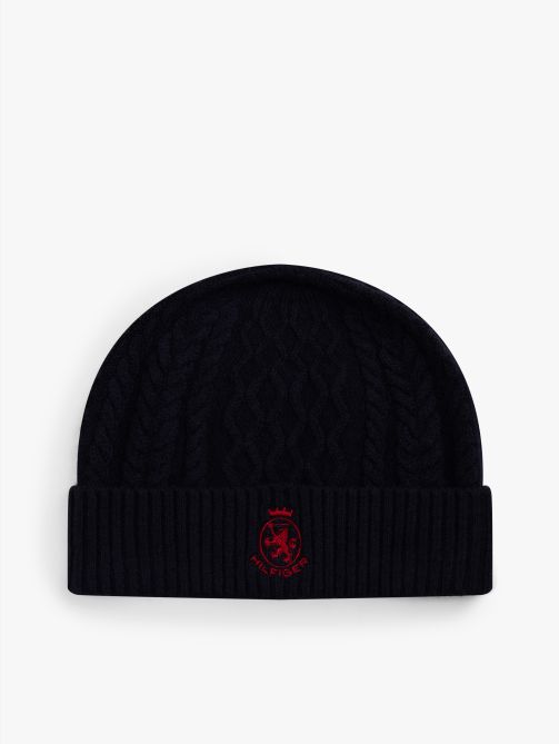 تألّق بإطلالة شتوية مستوحاة من الطابع الكلاسيكي مع هذه القبعة المحبوكة التي تتميز بتصميم بنمط الكيبل وتطريز شعار TH على الجهة الأمامية، لتمنحك مزيجًا مثاليًا من الدفء والأناقة.
