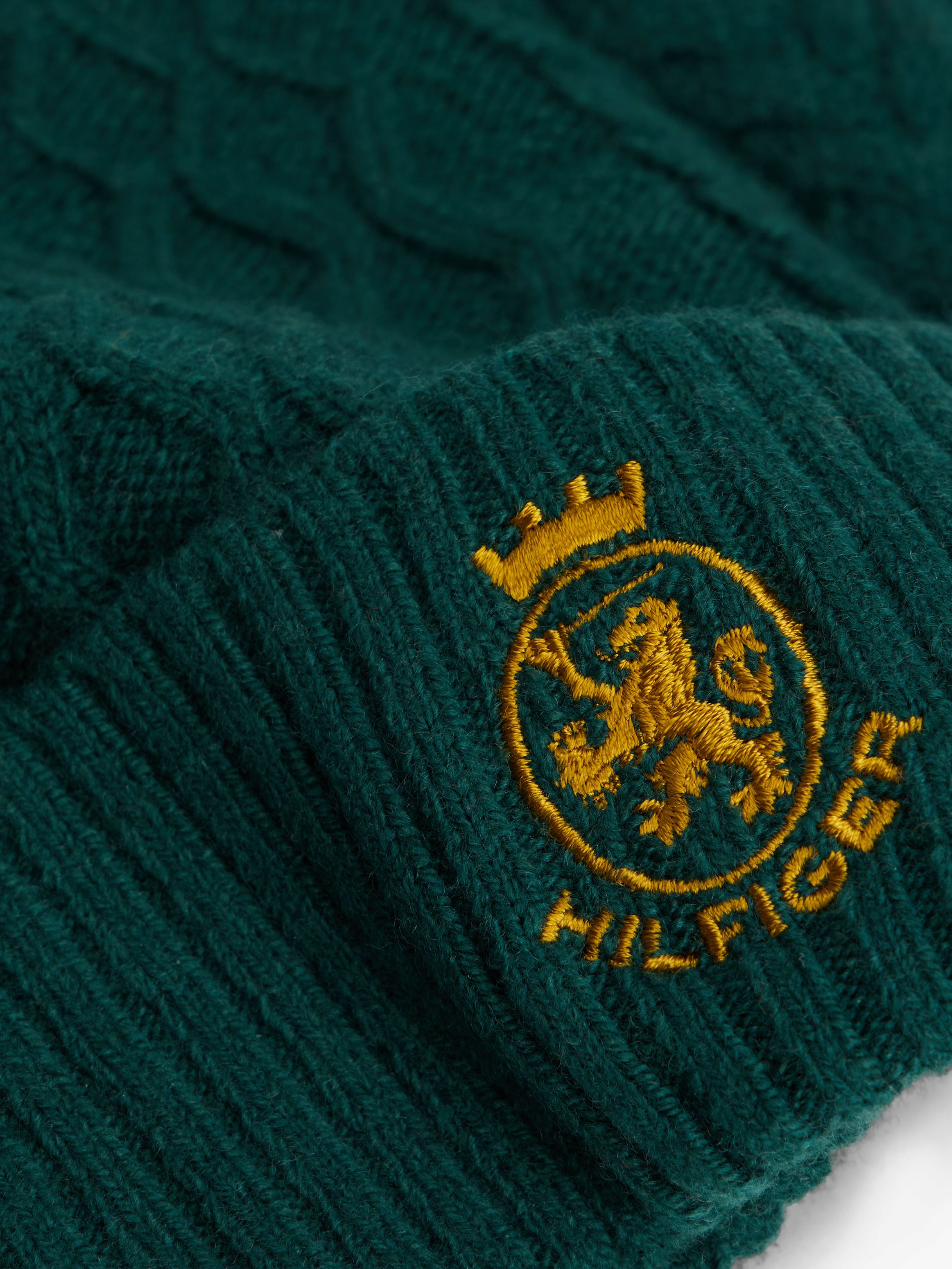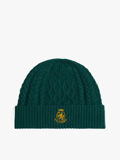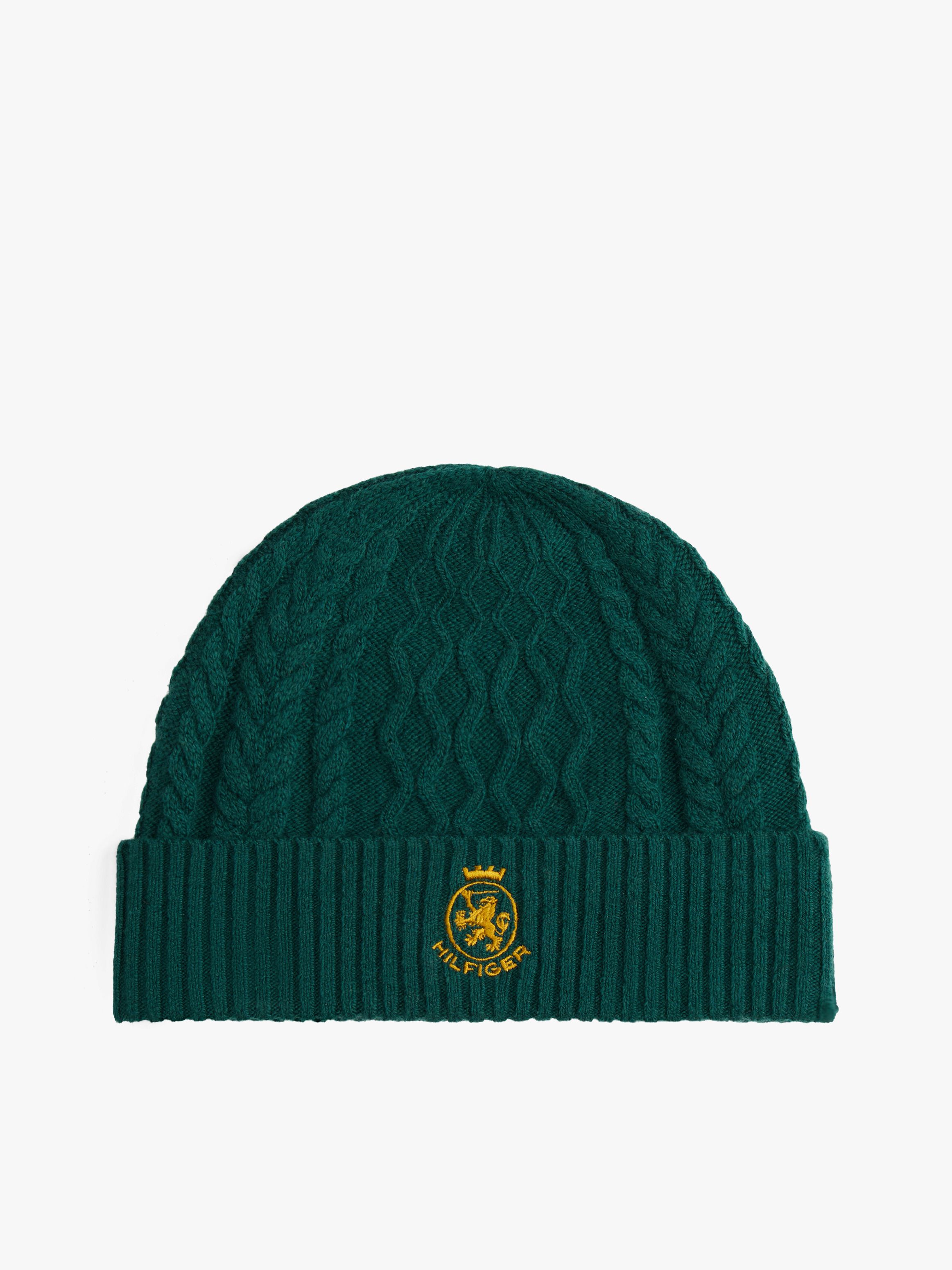 تمنحك هذه القبعة المحبوكة لمسة كلاسيكية مستوحاة من التراث بفضل تصميمها بنمط الكيبل وتطريز شعار TH على الجهة الأمامية، وتُعد خيارًا مثاليًا للدفء والأناقة في أيام الشتاء.
