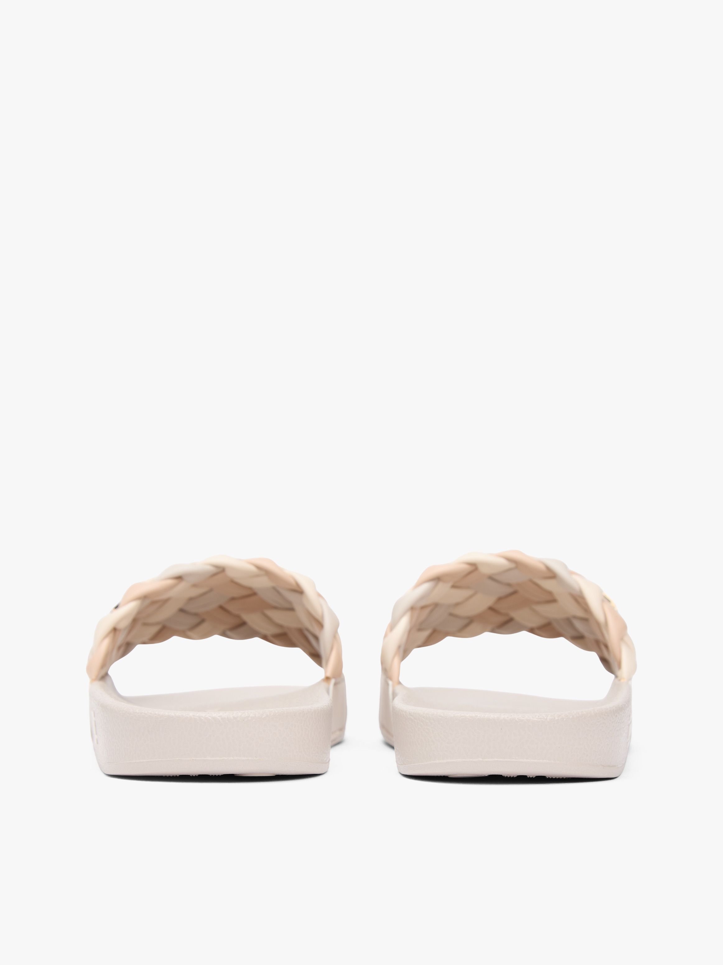 استمتع بالراحة والأناقة مع هذا الشبشب الذي يجمع بين نعل داخلي مُشكَّل لتوفير دعم مريح وحزام مضفّر مزوّد بلمسة معدنية تحمل حروف TH.