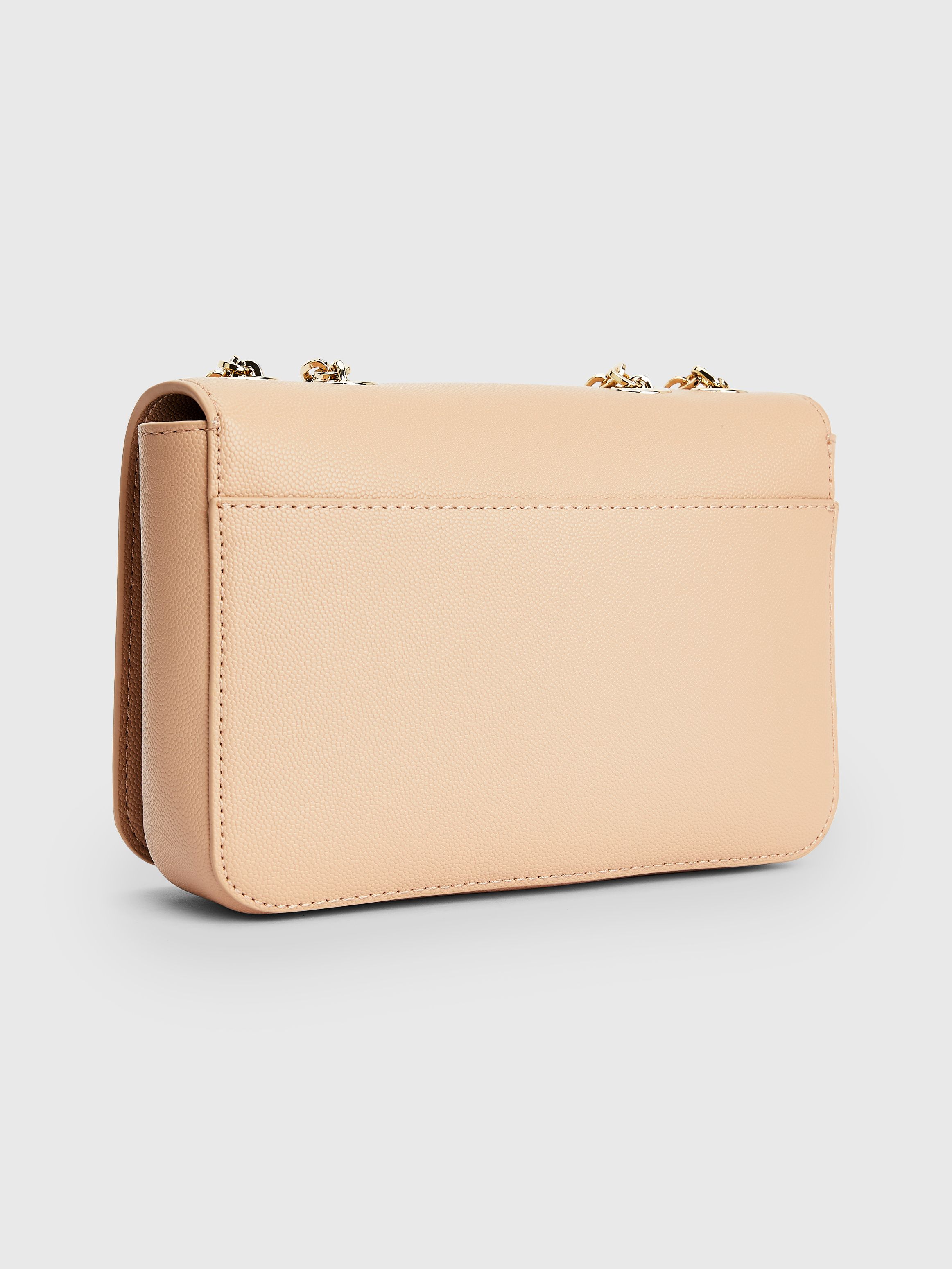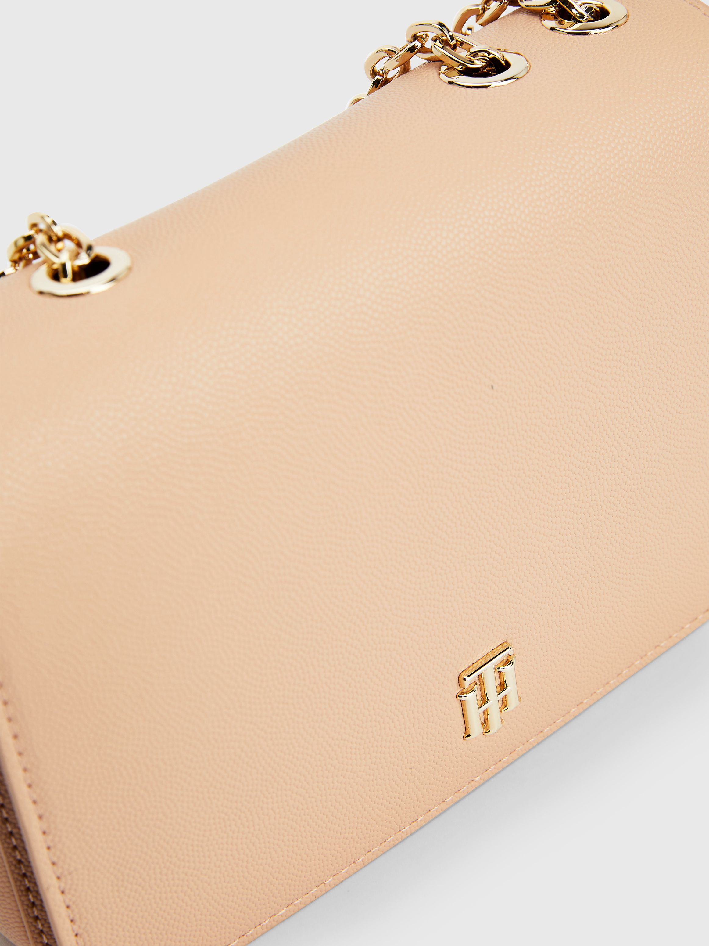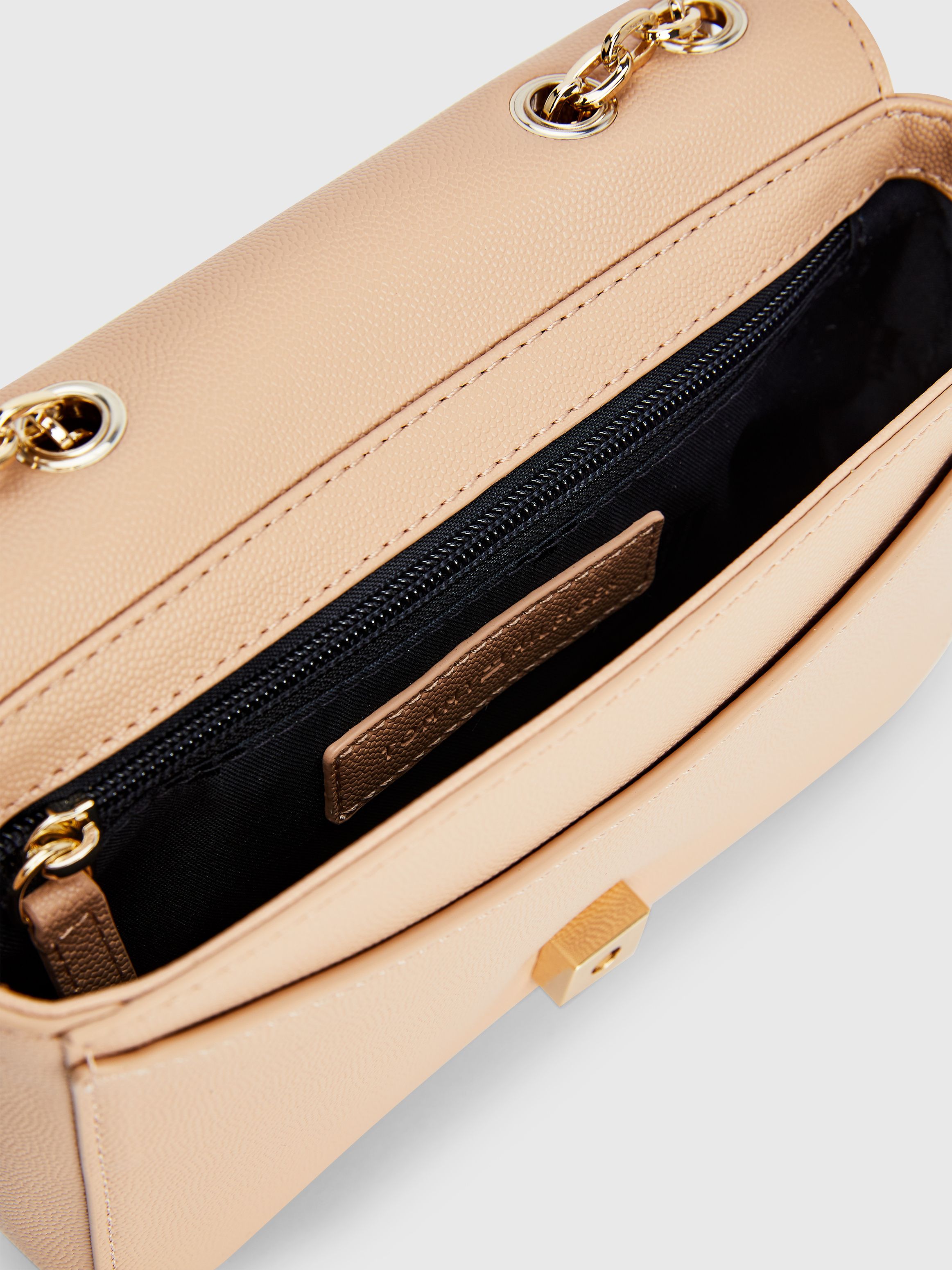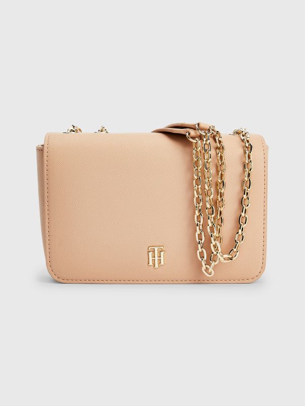• ملمس بارز • تغلق بمغناطيس • مقبض يد علوي • حزام كروس سلسلة • جزء رئيسي واحد • جيب أمامي مفتوح • جيب داخلي بسحاب • لوحة حروف الشعار على المقدمة • علامة تومي هيلفيغر التجارية