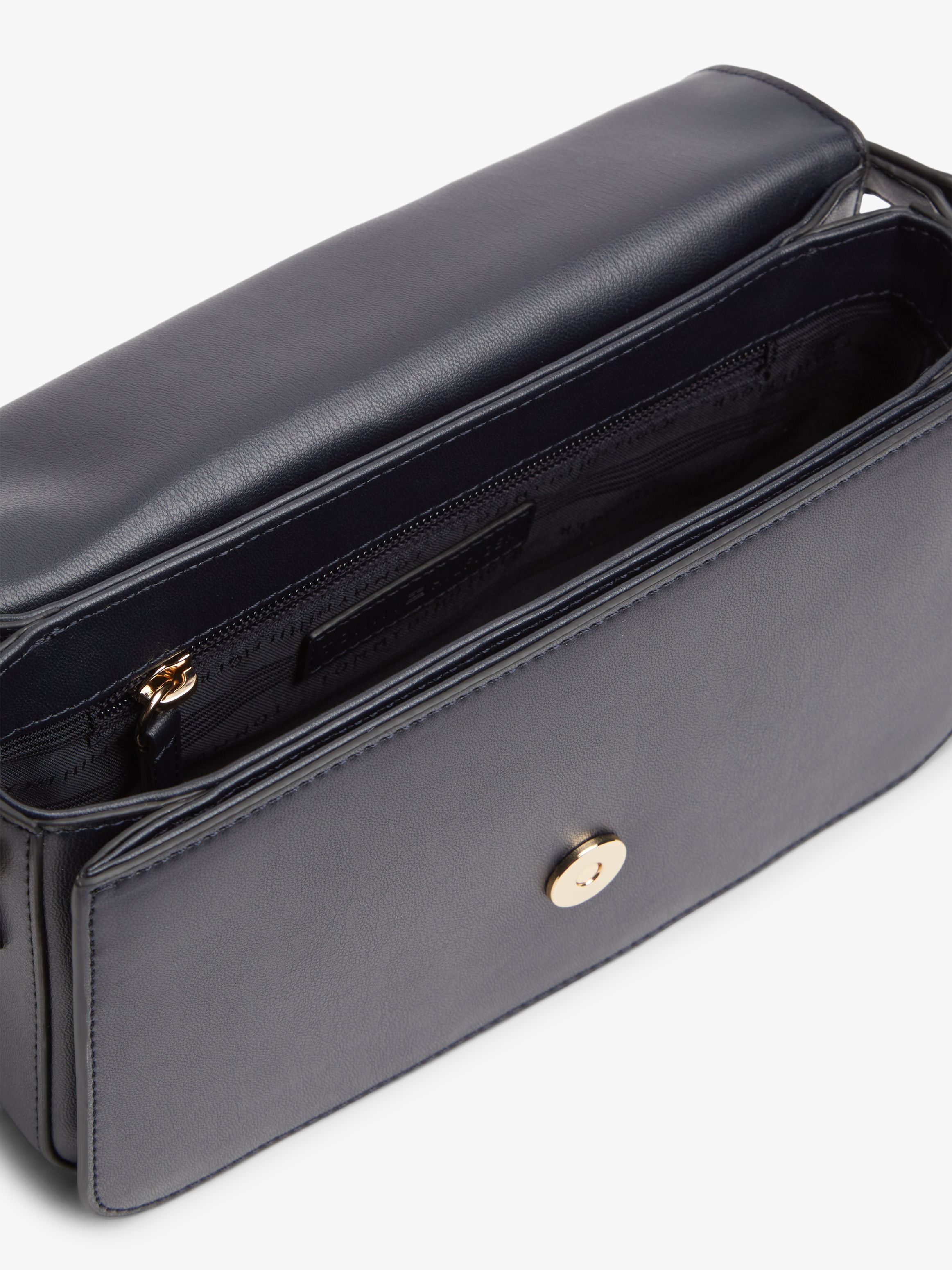 تتميّز هذه الحقيبة الكروس بودي بتصميم أنيق للاستخدام اليومي، مع غطاء مغناطيسي مزين بمشبك يحمل حروف TH لمظهر راقٍ وعصري. أبرز التفاصيل تصميم أملس إغلاق بغطاء مغناطيسي حزام كروس بودي قابل للتعديل حجرة رئيسية واحدة مشبك مزين بحروف TH على الغطاء علامة تومي هيلفيغر القصة والمقاس 23.5 × 7.5 × 15.5 سم السعة 1.5 لتر الخامة والعناية 100% بولي يوريثان