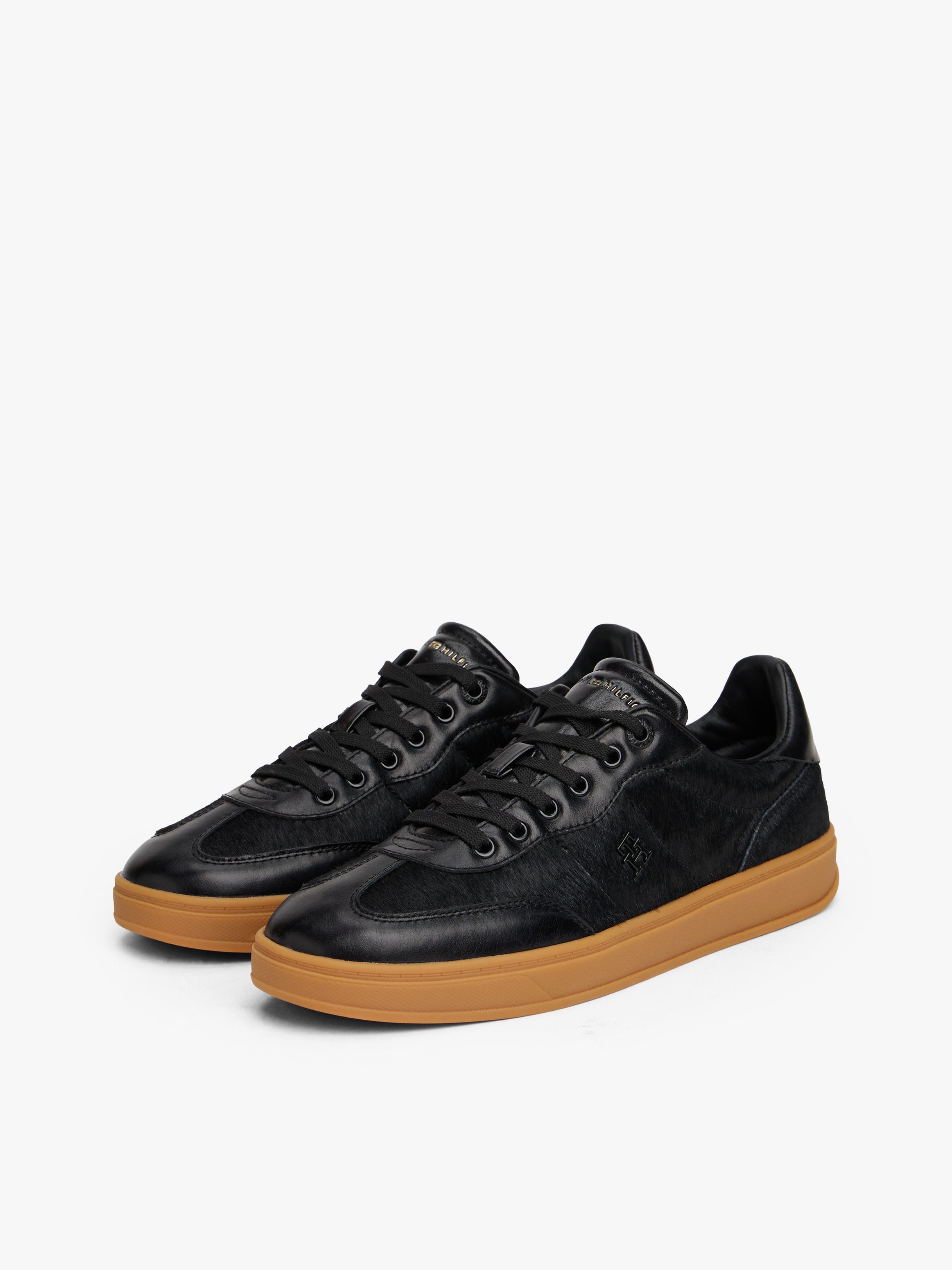 تتميز هذه الأحذية الرياضية الفاخرة بمزيج ملموس من الخامات، مع لوحة شعار TH بارزة على الجانب تضفي عليها لمسة راقية.