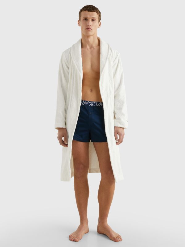 تضيف طبعة حروف الشعار لمسة أنيقة على روب الحمام الناعم والمصنوع من القطن الخالص.