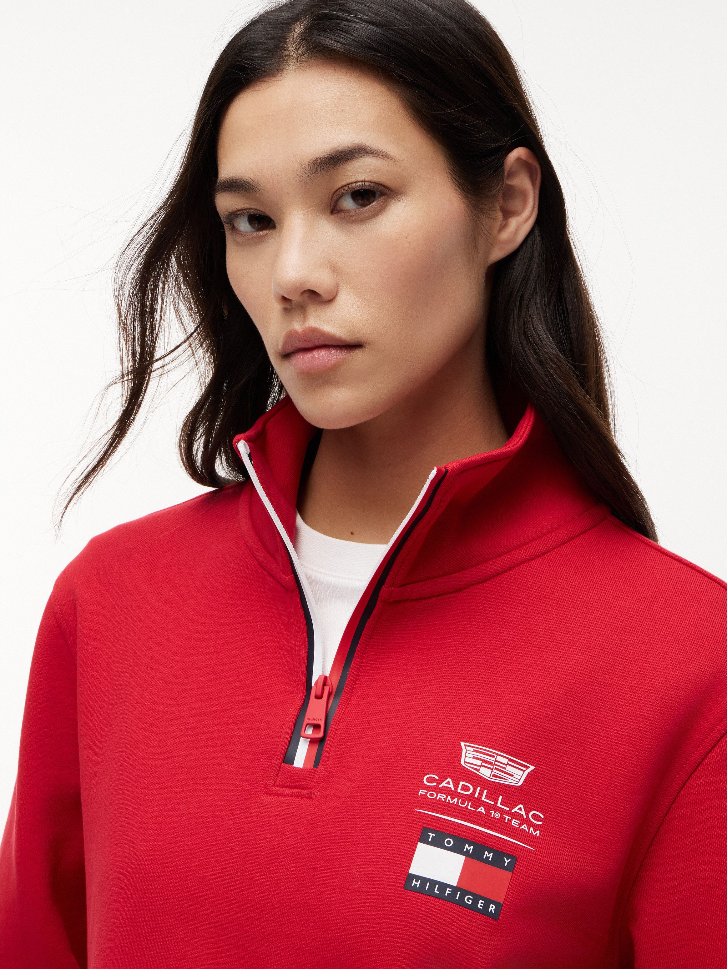 • سويت شيرت بنصف سحاب بطبعة خلفية من مجموعة تومي × فريق كاديلاك فورمولا 1®