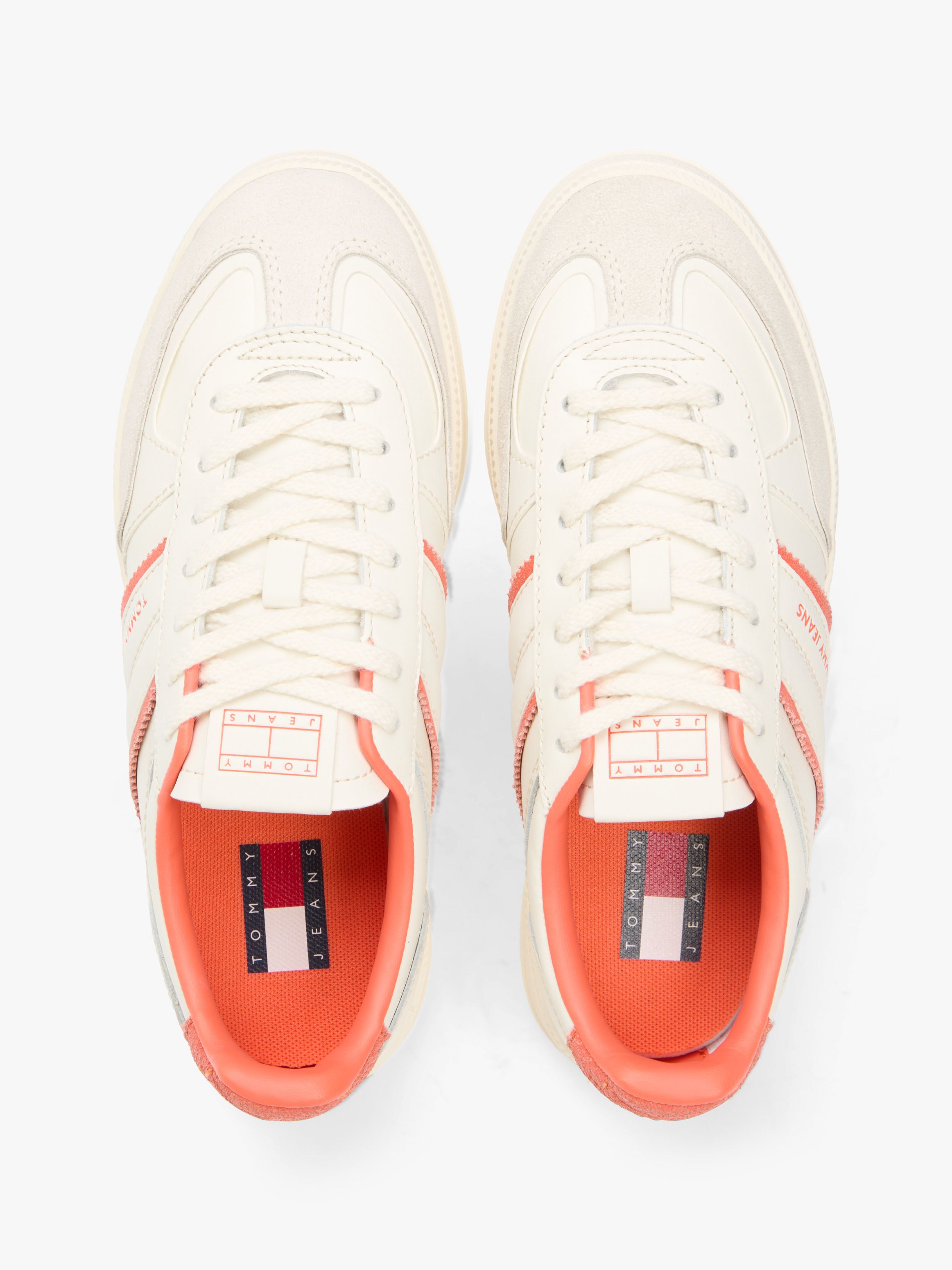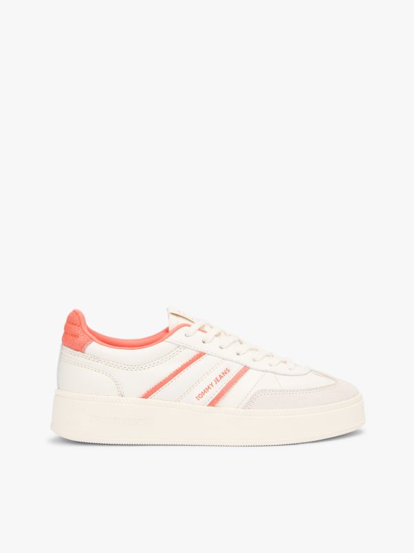 يتميز هذا الحذاء الرياضي المصنوع من الجلد بنعل عريض يمنحه ارتفاعاً إضافياً، مع حافة جانبية مسنّنة ولوحات بخامات متعددة تضيف مظهراً عصرياً متقناً. أبرز التفاصيل طبقة علوية من الجلد بطانة من البوليستر نعل داخلي قابل للإزالة من خامات متعددة نعل خارجي مطاطي نعل عريض لوحات بخامات مختلفة حافة جانبية مسنّنة شارة Tommy على اللسان شعار Tommy Jeans منقوش على الجانب يحمل توقيع Tommy Jeans القصة والمقاس رقبة منخفضة يُربط بالأربطة الخامة والعناية 100% جلد