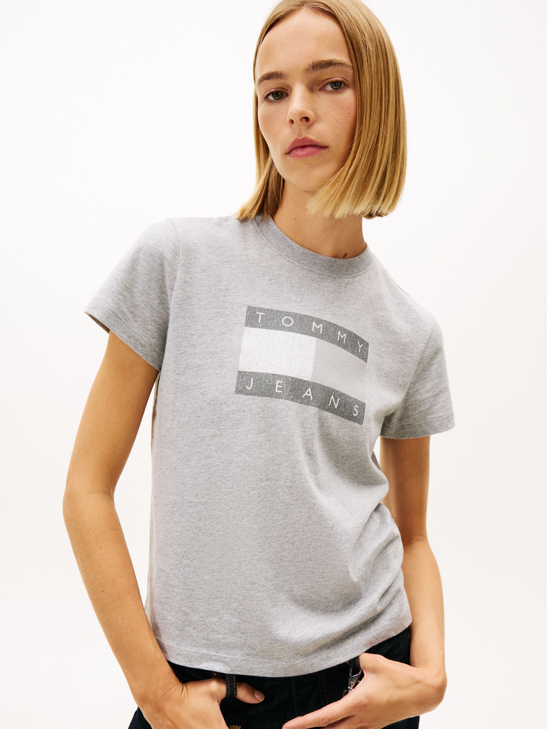 تيشيرت عصري من جيرسي القطن النقي، يتميز بشعار تومي بدرجات لونية متناغمة على الصدر ليكون قطعة أساسية في إطلالاتك اليومية.