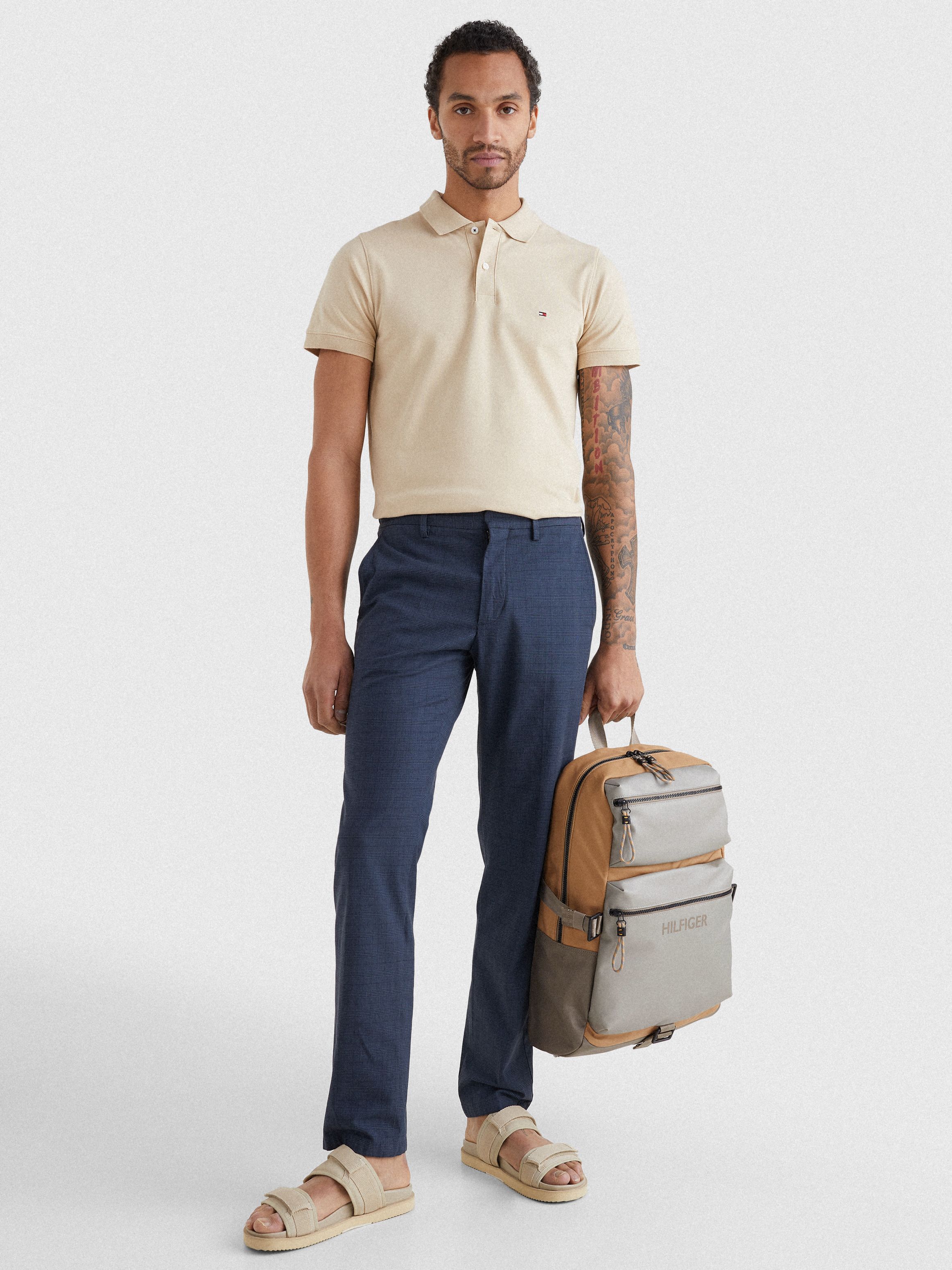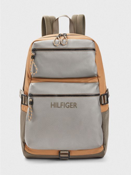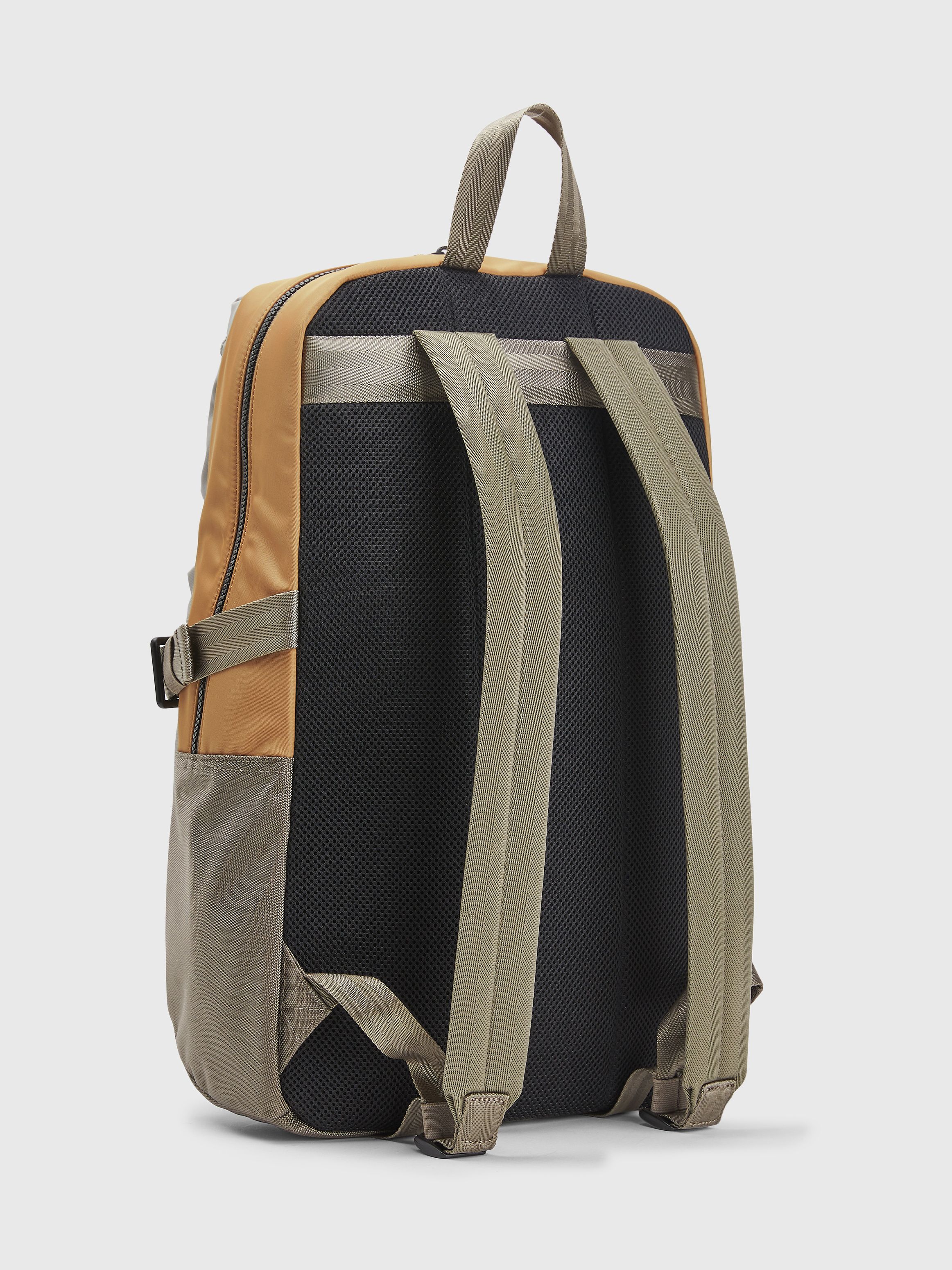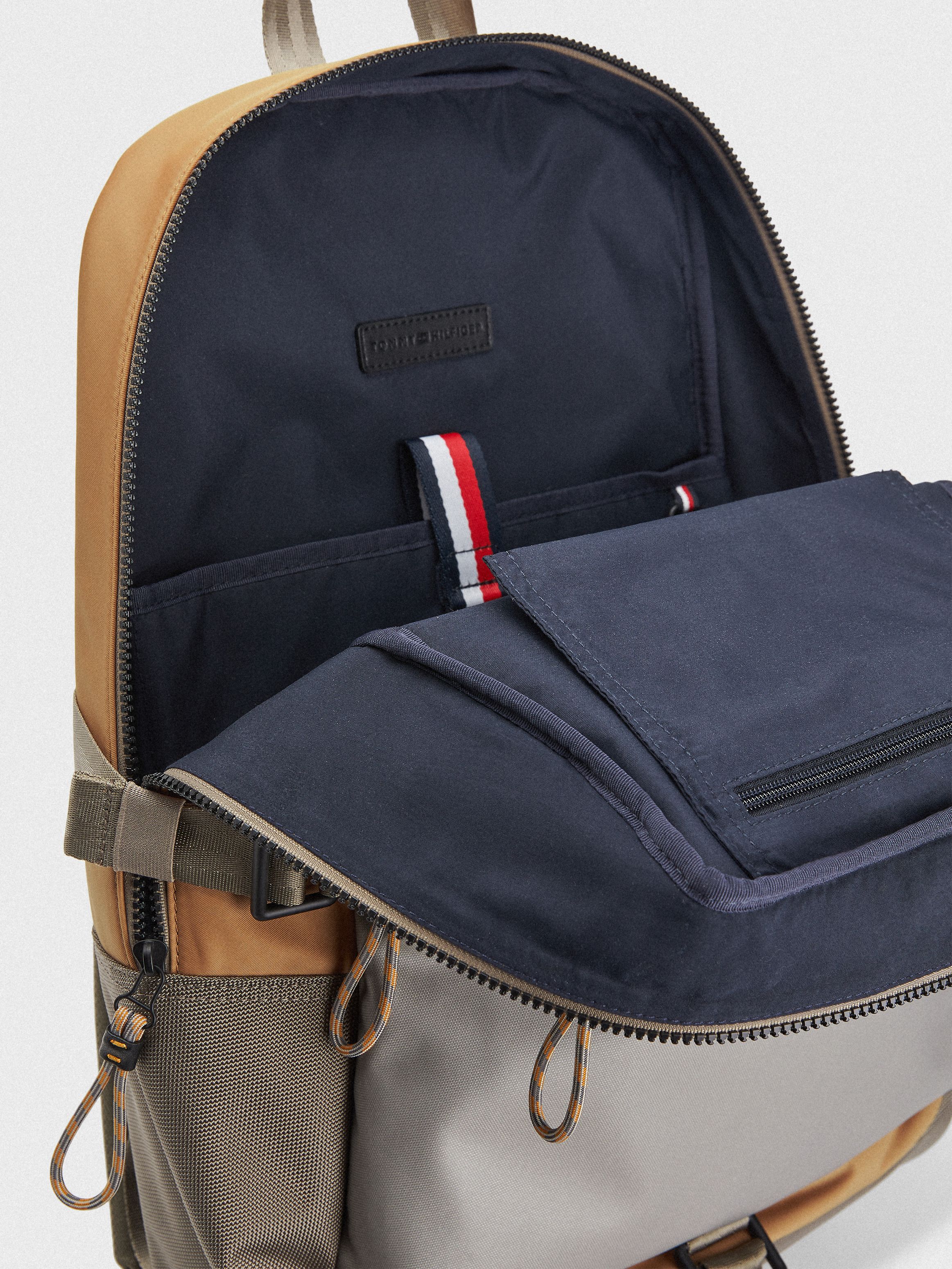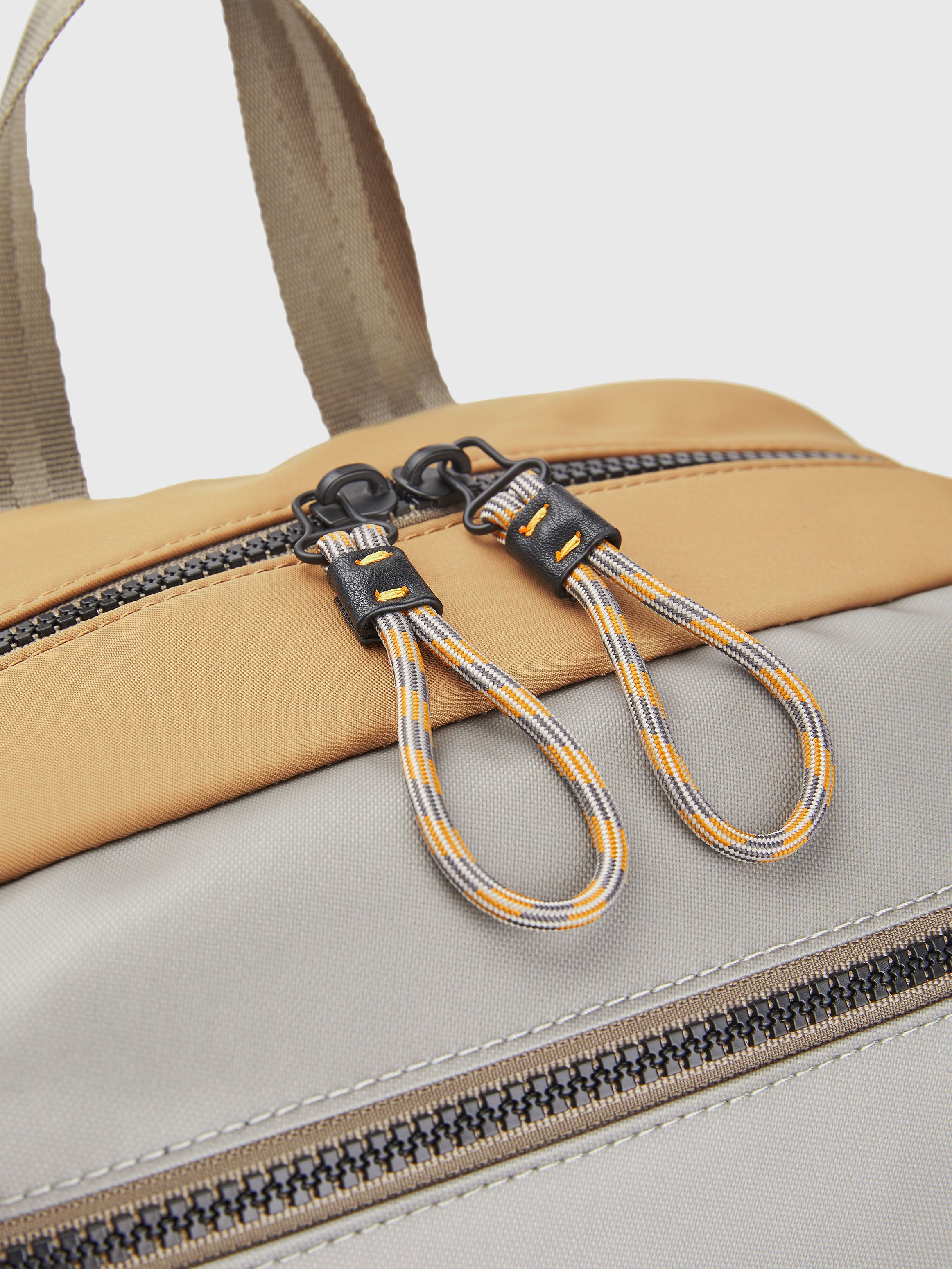 احصل على حقيبة الظهر المميزة المصنوعة من نسيج تقني معاد تدويره ورباط بتصميم مميز.