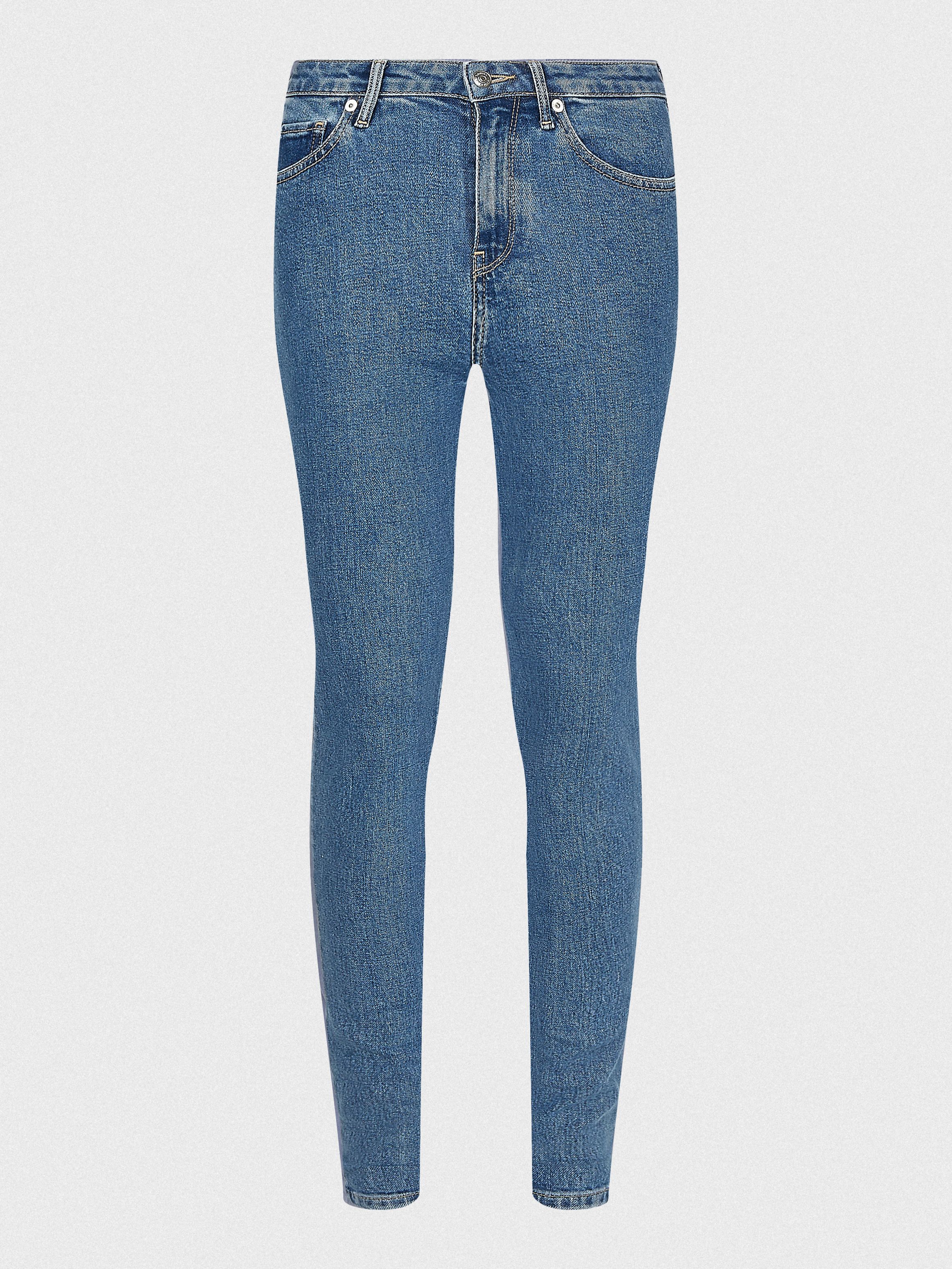 • بنطلون جينز سليم بخصر عالي  وأجزاء باهتة