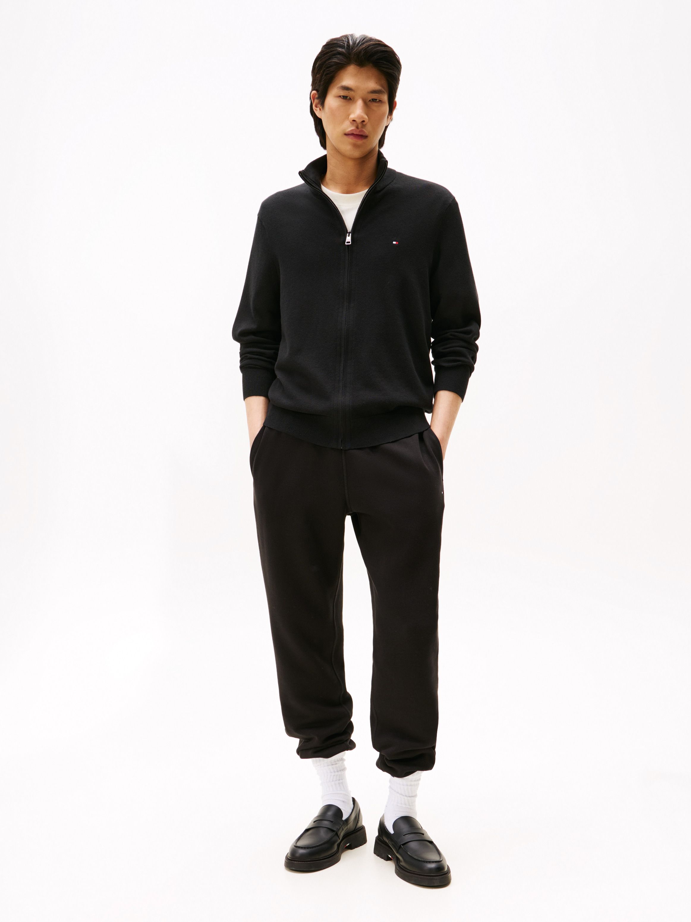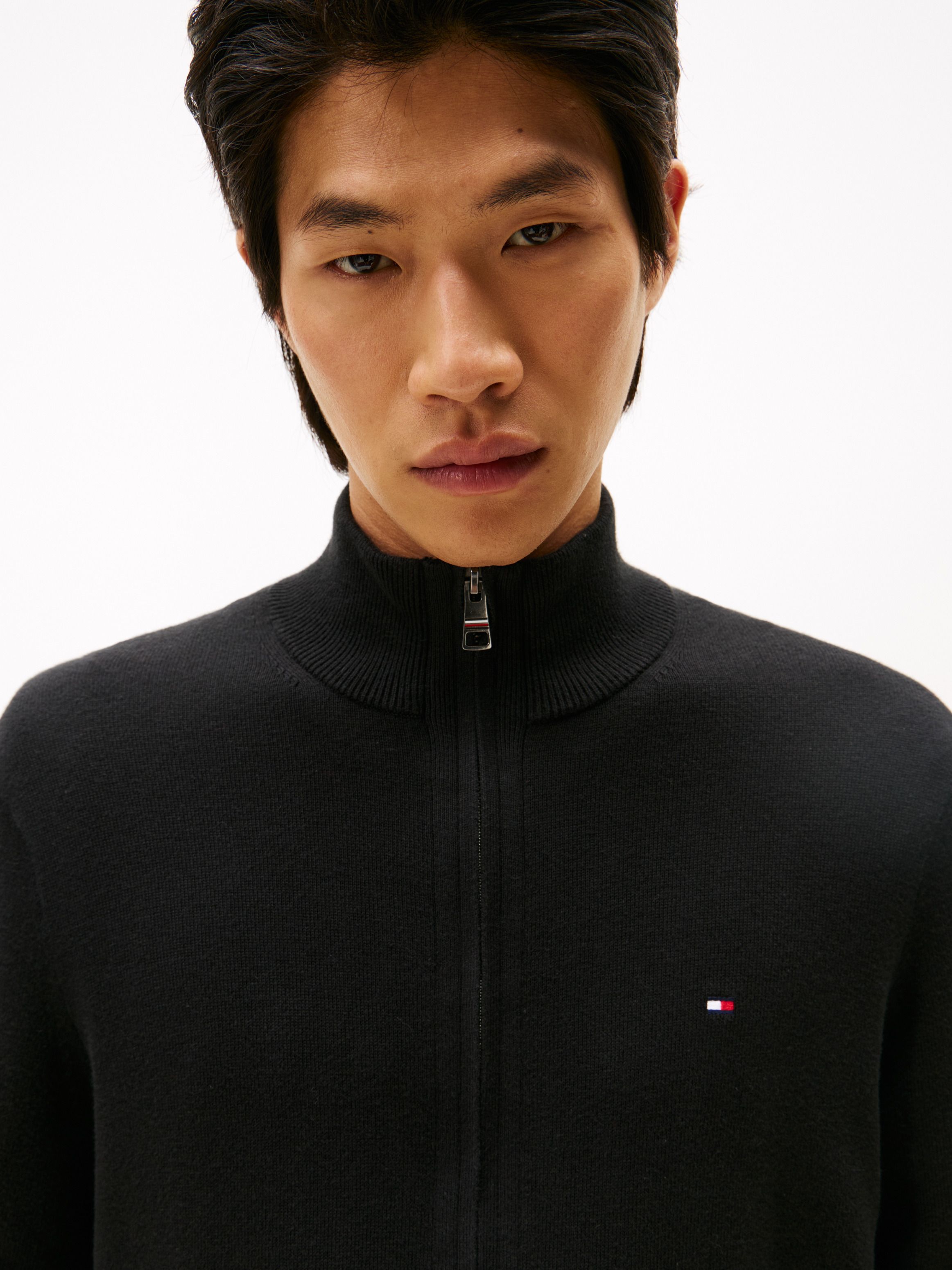 يمنحك هذا البلوفر بسحاب كامل إحساسًا بالدفء والنعومة بفضل خامته المصنوعة من قطن بيما والكشمير، ويزدان بتفاصيل شعار علم Tommy Hilfiger.